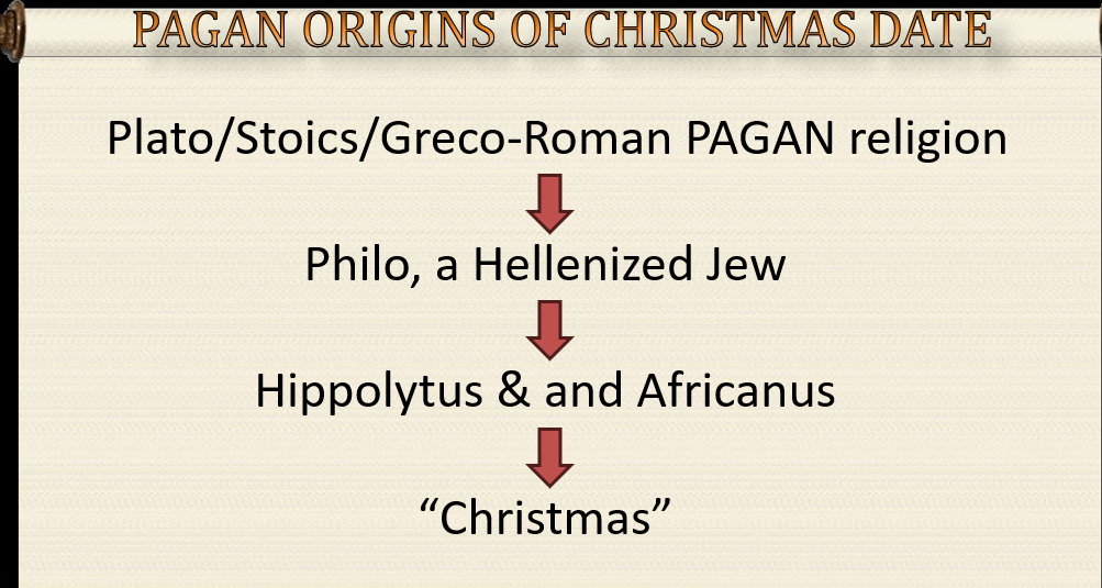 So, this is the direct philosophical and theological root that Julius Africanus, Hippolytus, and others copied when they placed the Messiah’s conception on what they called March 25th and birth on December 25th. Justin Martyr even quoted Plato several times, saying he borrowed ideas from Moses.